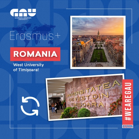 ქართულ ამერიკული უნივერსიტეტი აცხადებს კონკურსს ევროკომისიის მიერ დაფინანსებულ ერასმუს+ გაცვლითპროგრამაზე რუმინეთში, ტიმიშოარას დასავლეთის უნივერსიტეტში. პროგრამის ფარგლებში გამარჯვებულიკანდიდატი შეძლებს დაფინანსების მოპოვებასa და სწავლას ერთი სემესტრის განმავლობაში (2025-2026 სასწავლოწლის გაზაფხულის სემესტრში).